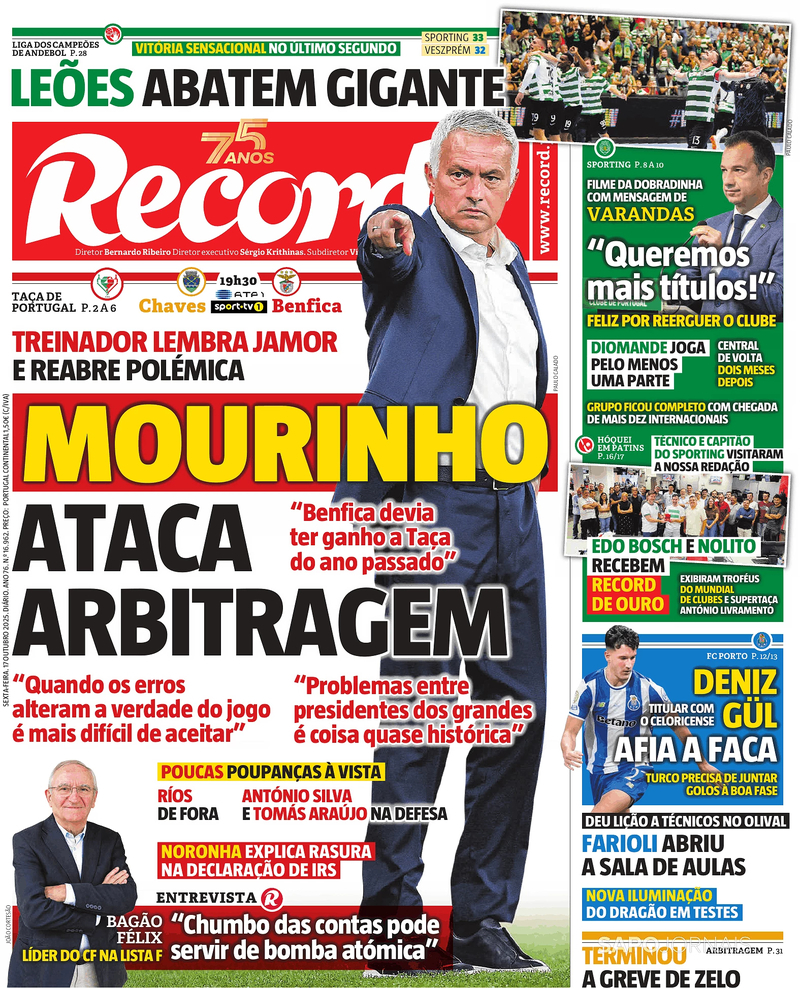 - "Chaves-Benfica. Mourinho ataca arbitragem. Treinador lembra Jamor e reabre polémica"
