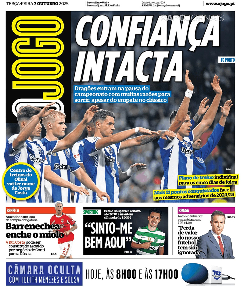 - "FC Porto. Confiança intacta. Dragões entram na pausa do campeonato com muitas razões para sorrir, apesar do empate no clássico"