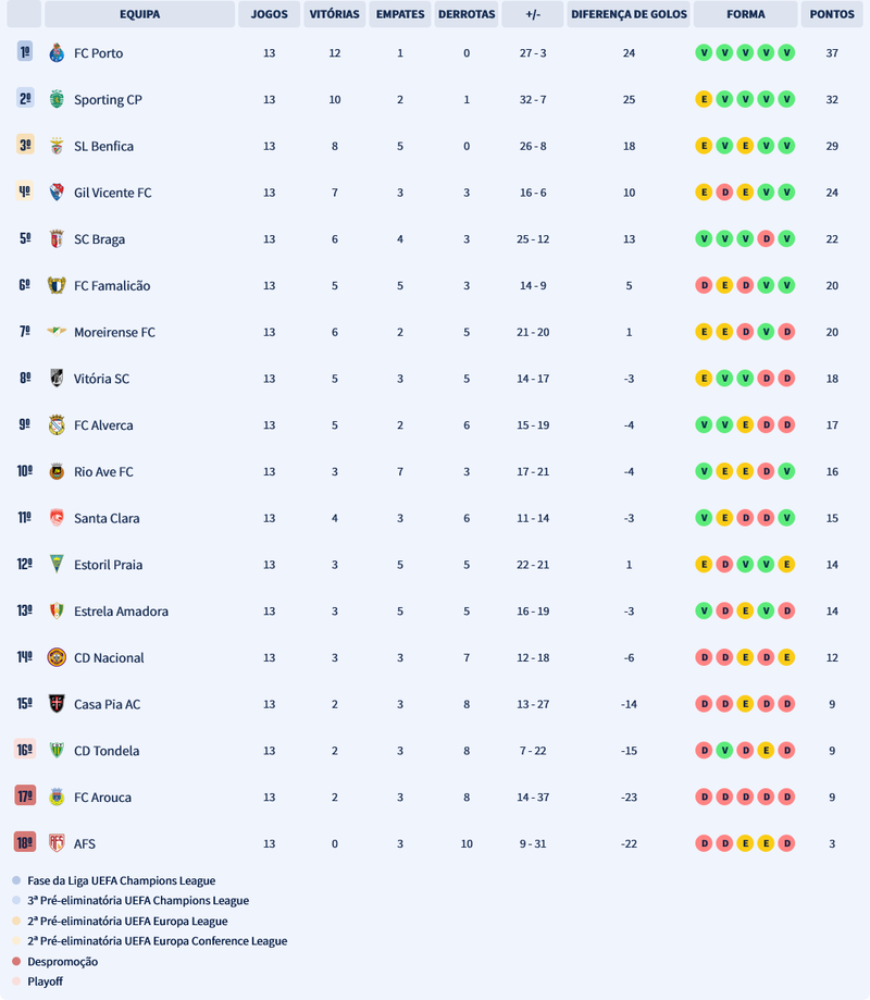 Classificação I Liga - Jorn 13
