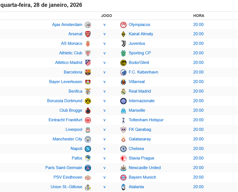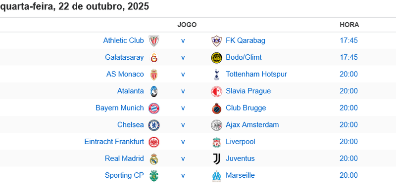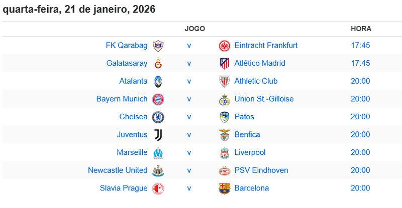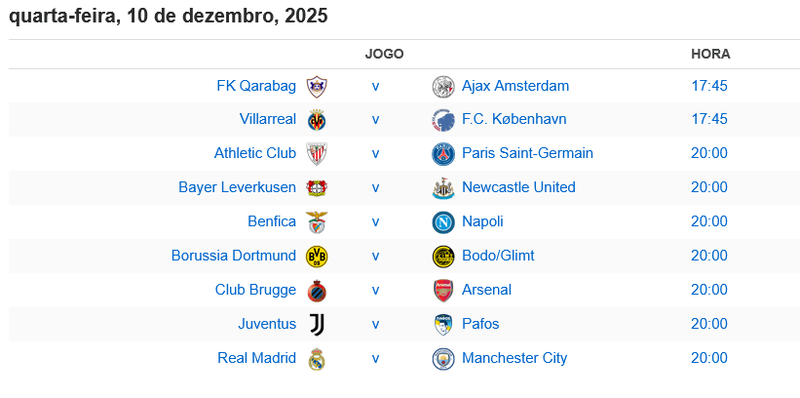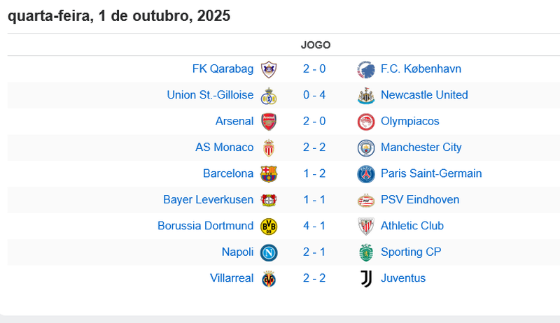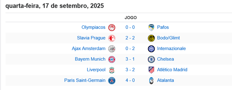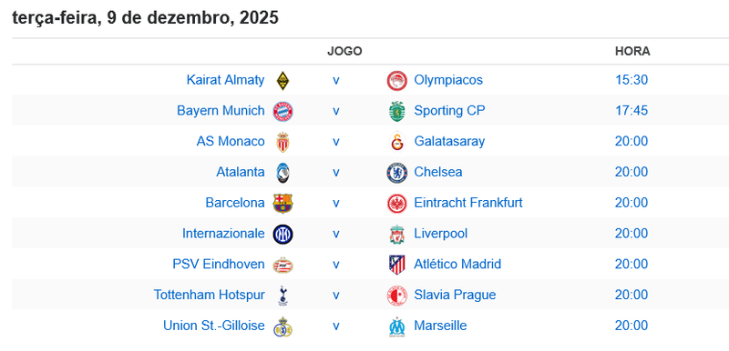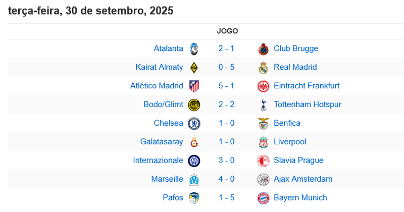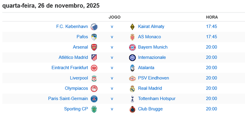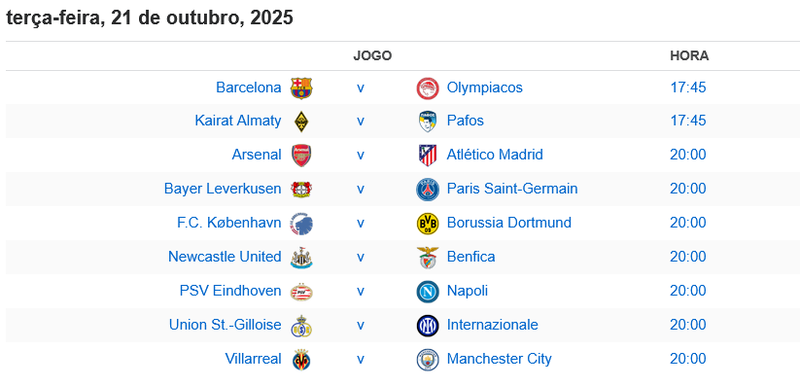 Jornada 2 Fase de liga da Liga dos Campeões 25/26