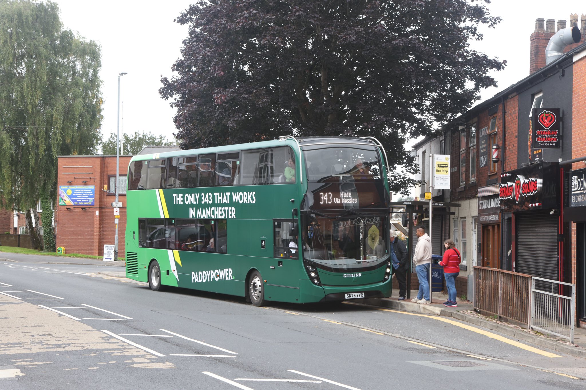 "Este é o único 343 que funciona em Manchester", pode-se ler num 'banner' gigante no autocarro, esta sexta-feira.