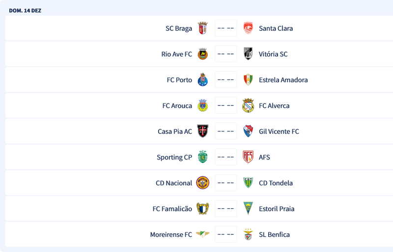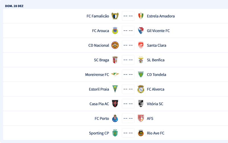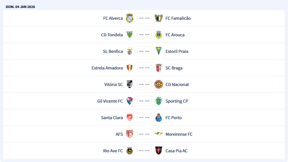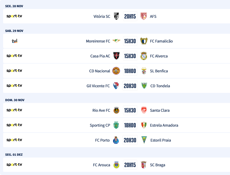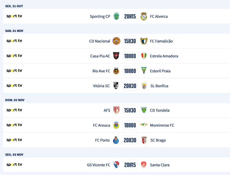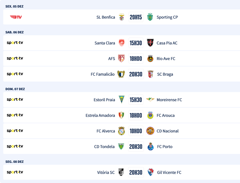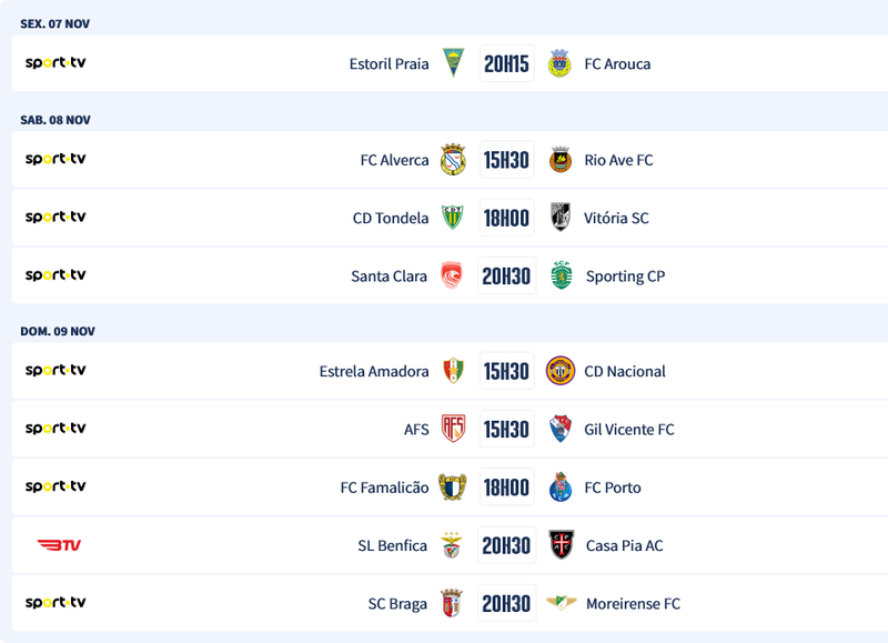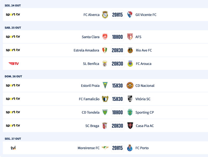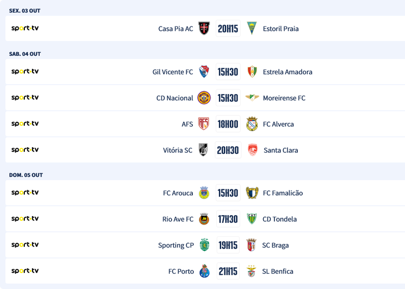 Confira o calendário das próximas jornadas da I Liga 25/26