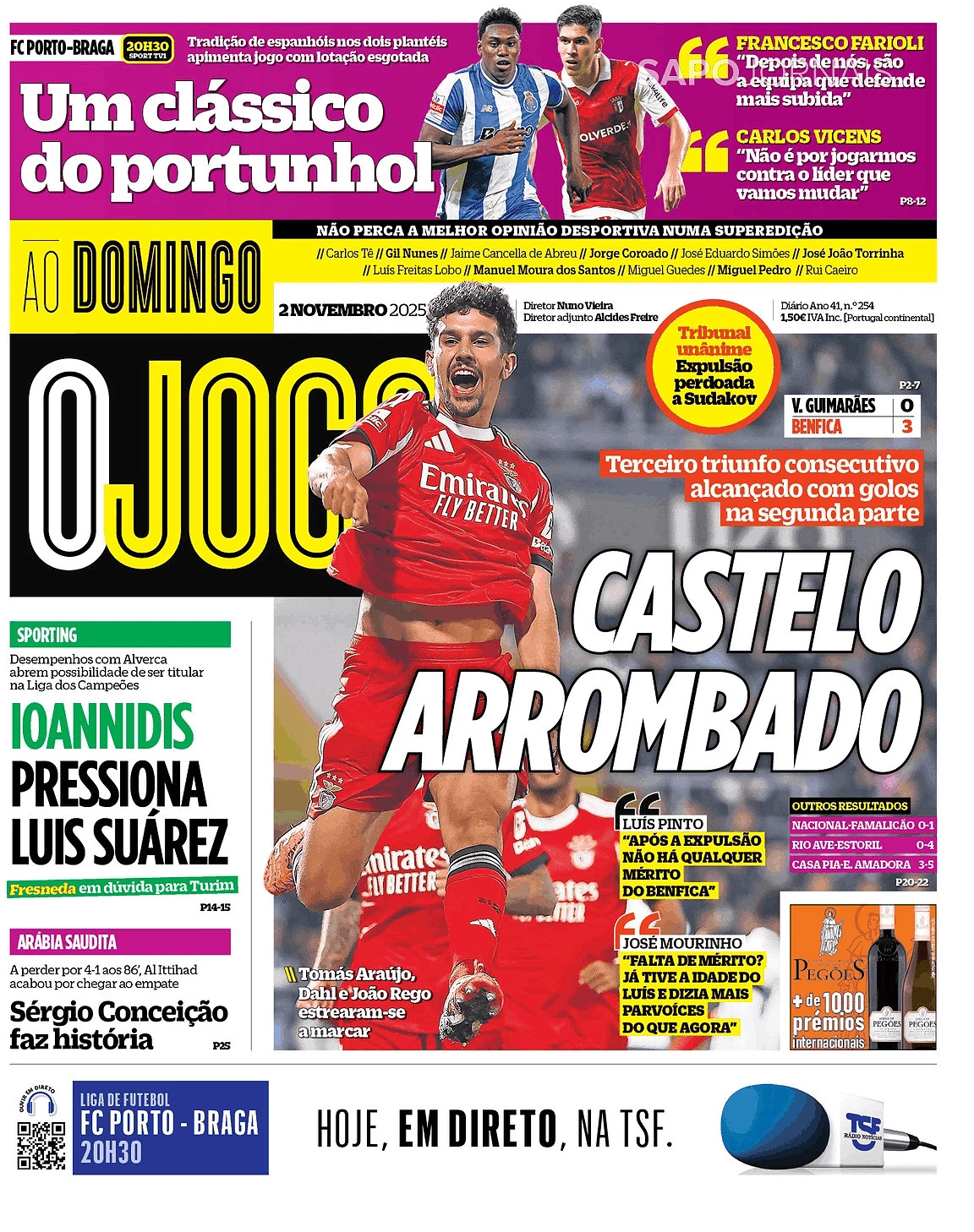 Por fim, 'O Jogo' também dedica atenção ao "clássico do portunhol" entre o FC Porto e o SC Braga.
