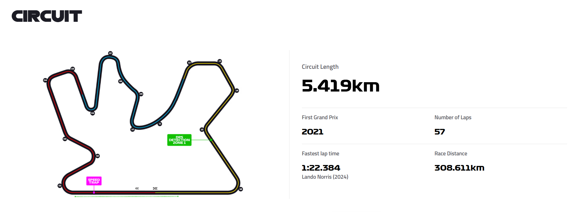 O Lusail International Circuit tem uma extensão de 5.419 km e é bastante rápido, nomeadamente com as curvas (16) de alta velocidade. Em virtude disso, a aerodinâmica dos monolugares poderá fazer a diferença, bem como o desgaste dos pneus.
